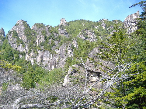 荒々しい岩峰。 さすが有名なクライマーの山。 クライマーでなくても惹き付けられます。 人の姿はここからでは見えませんでした。 |