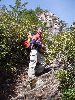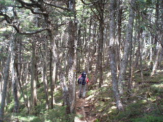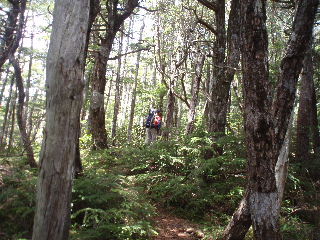 | シャクナゲの木に囲まれた山頂へ。花はまったくありません。 | ||||