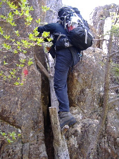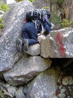 オッと大きいお尻で失礼! 結局ザックを先に受け取って貰い 空身で下りました。 難所でした、私には・・・フゥ^_^; |