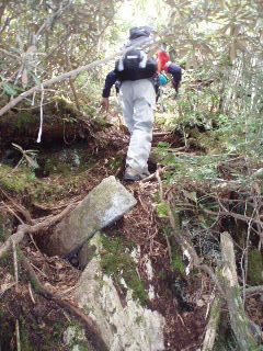 | とても整備された登山道とはいえません。でも印やルートははっきりしています。 | ||||