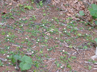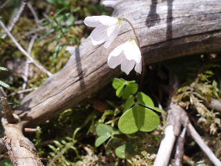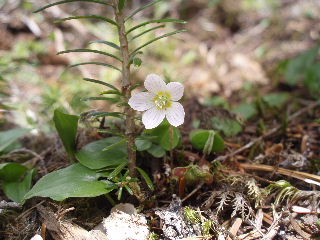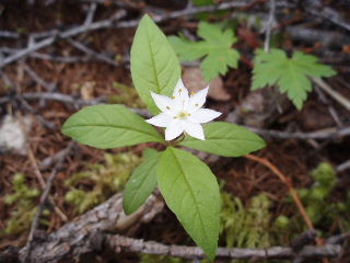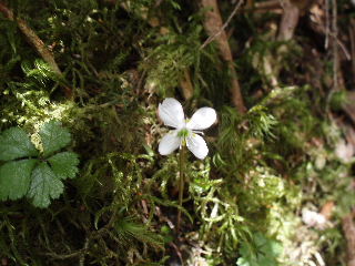 | はっきりと分かりやすい登山口の標示がありますが、やや奥まった場所です。このとき丁度この前に駐車させている人がいました。登山口ですが・・・と言った小さな声は聞き取れなかったものか駐車続行。それ以上は言えず気になりながらもその場を後にします。 足元にはマイヅルソウ。 |