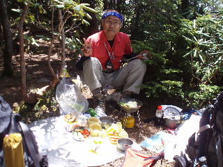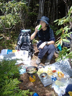 狭い山頂ですが、奥まったところで またまた前日と同じメニューです(^^ゞ |