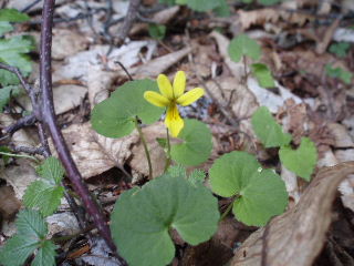 | 山頂に近づくと樹林の中にも陽が射し込み明るく感じられます。曇っていると鬱蒼とした感じなのでしょうが、お陰で花の少ない中、コミヤマカタバミがよりいっそう引き立ちます。 | ||||