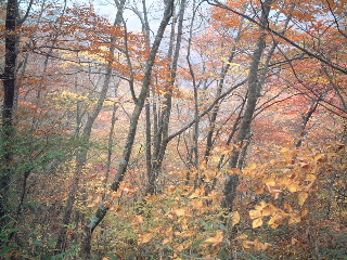吊り橋を渡り、登り返してから合羽を着用。この時不動滝へ向かう近ツリのツアー数名とすれ違った。ウエストバックを濡らさないよう後ろにまわし、合羽で隠したつもりだったのだが、これが失敗の元だった。神蛇滝の手前から下山路に向かい、その分岐を少し下りた辺りにデジカメを落としたのに気付かなかった。尾根道から黒戸尾根分岐を通過し、少し強くなった雨を気にして後ろのウエストバックに手をやったとき、先ず携帯が落ちそうになっているのに気がついた。ファスナーが開いていた。紛失しているものは無さそうだったので再び歩き出したのだが、よく見れば脇に入れていたデジカメが無い!慌てて引き返した。合羽を着たときは持っていたのを確認していたから最悪そこまで戻らねばならなかった。カメラは壊れかかって買い直さねばと思っていたので諦めもつくが、撮ったものが欲しかった。