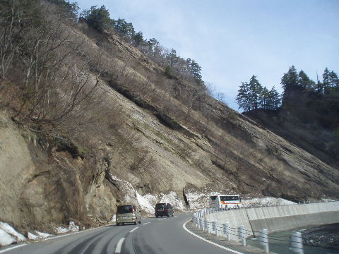 奥裾花渓谷を行くと珍しい岩肌。