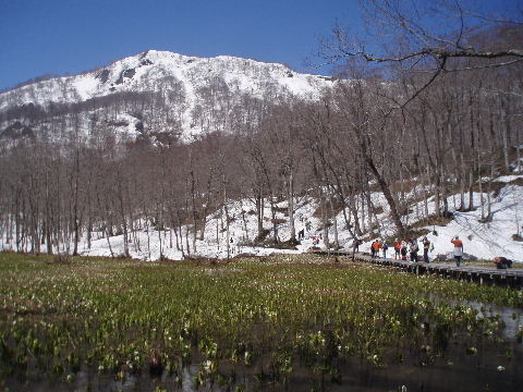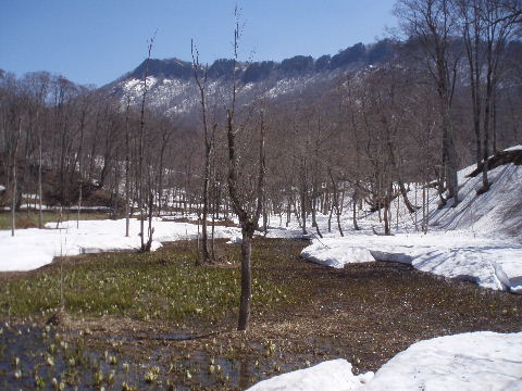 中西山とミズバショウ