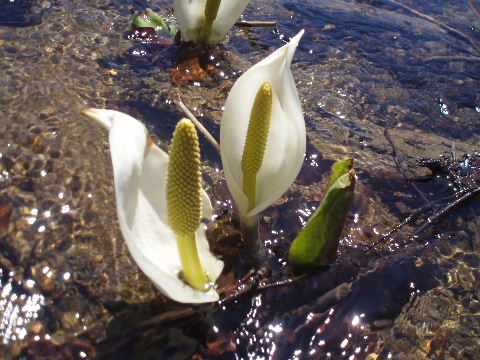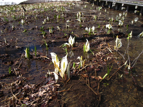 ミズバショウ、まだ三分咲き?