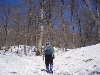 残雪の自然園の中はぬかっているというので