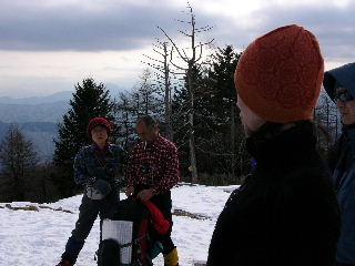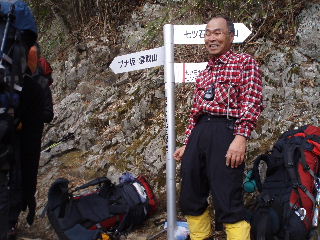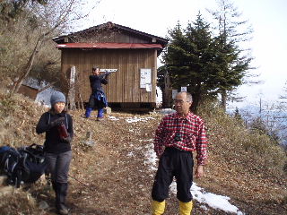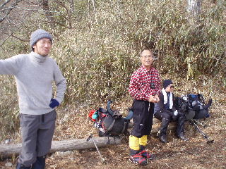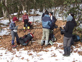 | 祐子さんは蓼科山以来の山行ということでしたので、続けてバッタリ遭遇ということになります(^^ゞ ほんとうに驚きました!みなさん6時出発予定だったということですが、もう大コーフン!話が終わりません(笑) ということでみなさん1時間遅れの出発になってしまいました。雲取山日帰りだそうです。「行ってらっしゃ〜い」とお見送りです。 |