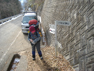 | 林道から登山道へ。 | |