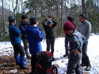 | H20年2月2-3日(土日) 天気;初日晴れ、二日目雪 Member.8人(かいねこさん、heppocoさん&heppoco隊長さん、小太り親方さん、まゆ太さん&¥乃助さん、トシちゃん&sanae) 【コ ー ス】(〜は歩、休憩含む。注:タイムはsanae隊) 2日:鴨沢(540m)8:25〜堂所(1250m)11:45-12:35〜七ツ石山分岐13:25-50〜七ツ石小屋14:00-10?〜七ツ石山(1757.3m)14:50-15:00〜ブナ坂15:13〜奥多摩小屋15:40(1750m、テント泊) 【標高差1217.3m、休憩含む所要時間約7時間15分】 3日:奥多摩小屋9:30〜ブナ坂10:05-?〜七ツ石山分岐11:07〜堂所〜小袖林道13:40〜権現平〜鴨沢(540m)14:35 【休憩含む所要時間約5時間】 |