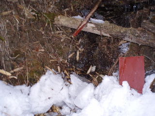 | 途中の水場。出ていました。 ↓ 親方さん補給です。 |