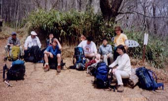 今回はナイトハイクをするという面白い企画だった。山行といえば明るい内に行動するのが基本だが、やむを得ずヘッドランプをつけたまま行動せざるを得ないときもある。又、いざという時のビバーグ体験もしてみようというリーダーの熱意がメンバーの胸に熱く伝わった?。そういう非常時に備えての訓練と受け止めて(という意図があったかどうか知らないが)、その奇抜な計画に、本音は面白そうという好奇心旺盛の面々がなんと9人も集まった。リーダーの人望と信頼感があればこその今回のパーティは、20代の若者から40代後半の自称若者まで、男6名・女3名の物好き(としか思えない)だった。