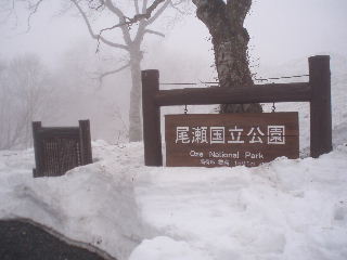 | 6時過ぎに起床。予報どおり曇りがちというより濃霧の朝です。鳩待山荘の裏手にはトイレもあり、使用可(一回100円)。駐車場は下の100台以上は置ける方にしましたが、鳩待山荘前のロータリーにもスペースがありました(1日目2500円、2日目以降1000円)。 尾瀬は昨年の8月30日、日光国立公園から独立し、29番目の尾瀬国立公園となったのですね。 登山口の様子を確認して戻りますが、まだかなりの積雪です。 |