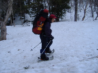 | マイスノーシューは先週に続き2回目。下りやトラバースでは慎重に。 | ||||