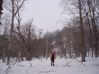 | 電柱は小屋に続いているはず・・・と迷い無く進んで行きます(^^ゞ | ||||