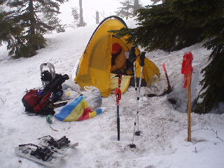 テント撤収しているうちに ガスも晴れてくるでしょう。 その様子で判断しましょう。 |