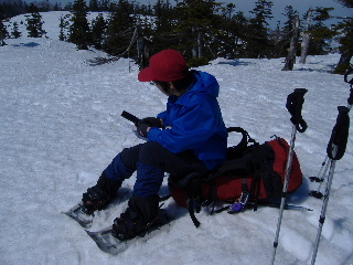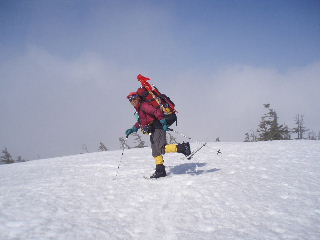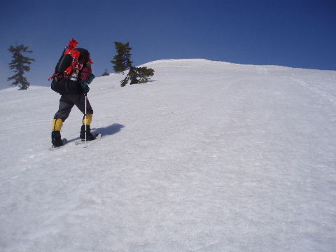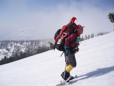 登りはスノーシューで。 |