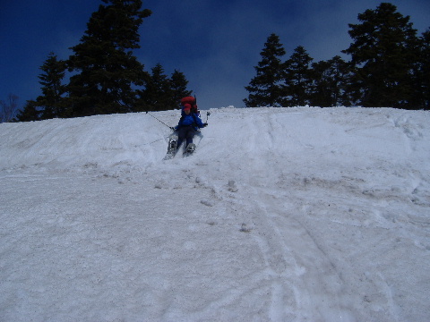 下りは柔らかい雪でちょっと急です。 |
