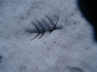 枯れ木の形に雪解け・・・ |