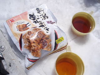 気持ちのいい稜線漫歩ですから 急がずのんびりと眺望を楽しみます。 「ぬれおかき」主食代わりにもなりますね(^^♪ |