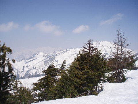 | 今回の目的の山は景鶴山と平ヶ岳で、その二つだけが2000mを越えていました。あとは2000mに満たない山の稜線歩きでしたが積雪はたっぷり!気象状況では春山にも冬山にもなるという体験をしてきました。最新兵器スノーシューの過信できない面も体感しつつ、その快適さを充分堪能してきたのでした。 |