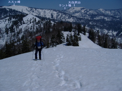 大白沢山から見ると登れるのか?と思われた ススヶ峰ですが大丈夫そうです。 |