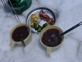 おしること残りの漬物、山では最高です♪ |