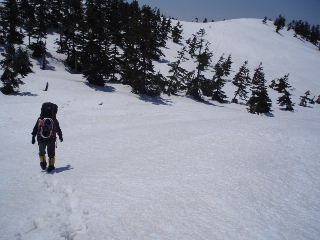 | 上り詰めれば山頂かと思ったら、トラバースぎみの登りです。 | |