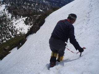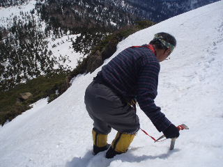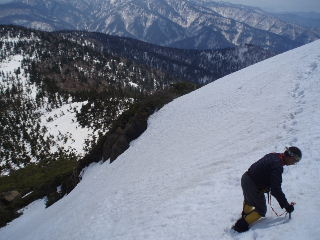 | しっかりとピッケルを刺しながら行きます。 | |