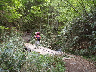 | 一ノ瀬を出発。三平橋を渡ると山道に。 | ||||