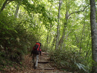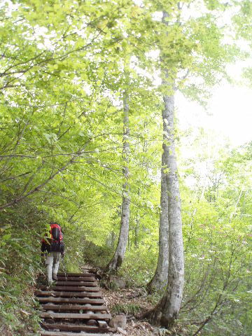 しっかりした階段が続きます。 緩やかで無理の無い歩幅が助かります。 |