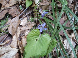 幾種類かのスミレやコミヤマカタバミも両脇に。 そして新緑が陽射しの中に輝いてとてもきれいです。 |