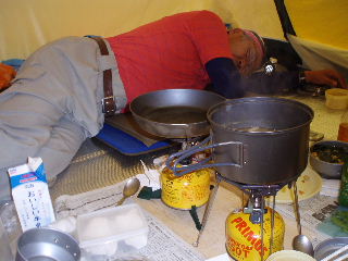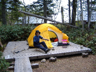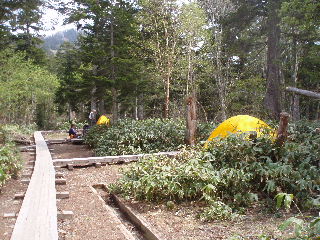 | 尾瀬沼でテントを張るのは初めて。今回おニューのテント。二人なのに4人用の豪邸! | ||||