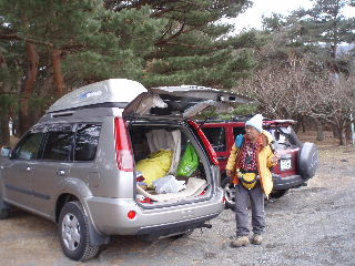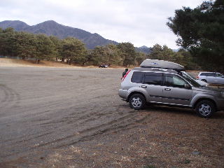 | 朝、キャンプ場の駐車場に移動。広い駐車場には既に数台の車。私たちも支度をして8時半に歩き出します。 | |