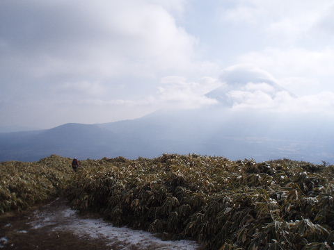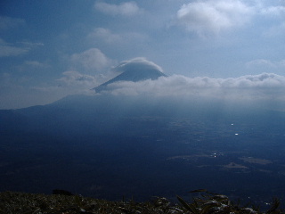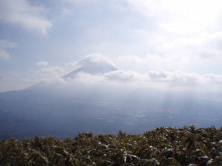 | 富士山眺望の素晴らしい山。この日は菰釣山に登る予定でしたが、思うところあり急遽変更。本栖湖キャンプ場より登りました。初日の出のダイヤモンド富士もいつか見てみたいものですが・・・^_^; この日は雲が多く、気温は氷点下。富士山は時折姿を見せてくれました。 |