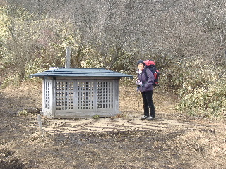 | 9:38 東屋に着きました。正面に石仏の入っている祠。 |
