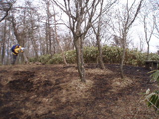 | 10:27 山頂です。2000年の辰年に整備されて以来、ダイヤモンド富士が見られるスポットということもあってか人気の山になったようです。山頂が広々ととてもきれいになりました。私たちは今回で5回目くらいでしょうか。 東屋でGETしている間に抜かれたお二人は果たしてさるや石ゲッターでしょうか?分かりませんが既にありませんでした(泣)何度も何度も周囲も必死に捜したのですが・・・(涙) |