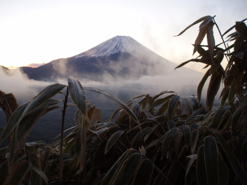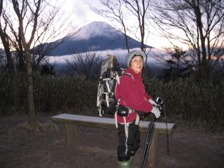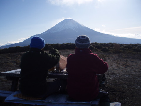 富士山が見えるうちに三脚に付けたカメラを向けます。ところがあまりの寒さにバッテリーがもたず・・・・三脚から外したり、バッテリーを入れ替えたり。 | |||