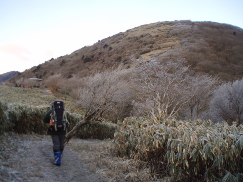 | 気温が低く、霜はそれほどまだ融けていませんでしたがこの先徐々に融け始め、やはり長靴で正解でした。 | ![]() |