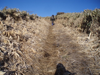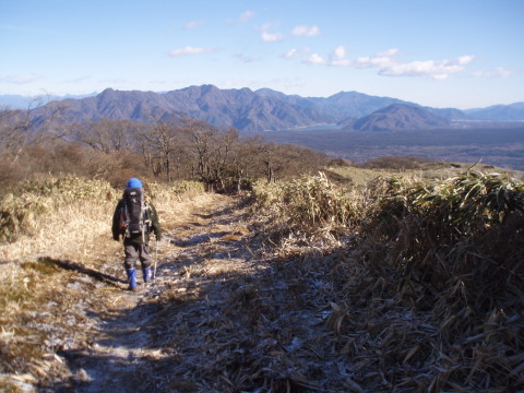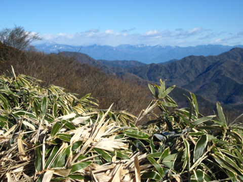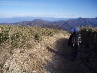 南アルプスや八ヶ岳は見えませんでしたが下る左前方に見える白い山並みは奥秩父や大菩薩の方でしょうか。 | |||