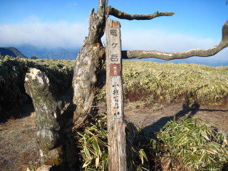 | 山梨百名山の標柱の位置が変わっていました。 晴天に期待した南アルプス方面の展望でしたが残念ながら見えず。やはり予報通りあちらは天気が悪いのでしょう。 |