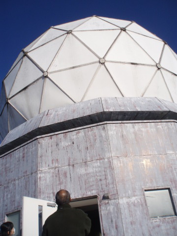 外に出てドームを見上げます。 あら、ドームが二つ・・・ いえいえ、ドームは上ですよ、上・・・^_^; このドームの骨組みをヘリコプターで運んで みんなで何回も試みてようやく定位置に置けた時の 感動が、甦ります。 ![]() |