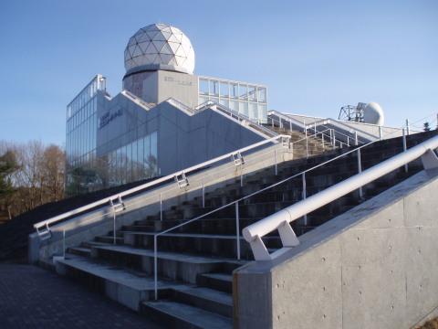 丸いドームの中には約35年の務めを終えた 実際のレーダーが入って動いています。 今は気象衛星や新しい気象レーダーによってその任務を終え 実際にはその働きを終えていますが、今でも十分機能はあるそうです。 ![]() |