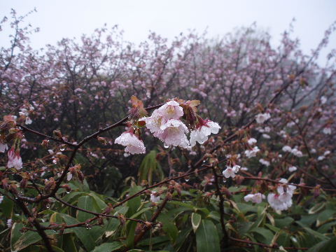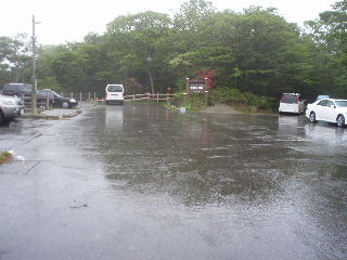 | 気温は16度。雨ですから山はやめて温泉としたいところですが、目的はシロヤシオ。温泉はあとからゆっくりと・・・ | |