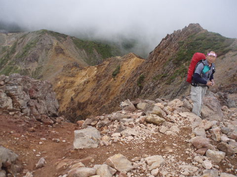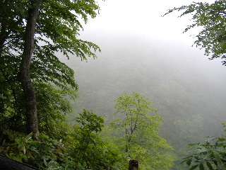 | 朝日岳の肩に戻りますが、三本槍岳のほうは相変わらずガスの中。 | |