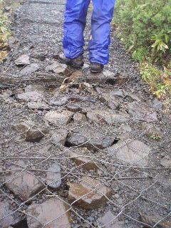 | でも土留め(石止め?)のワイヤーは雨に濡れ、滑りそうでかなり気を遣いました。 | |