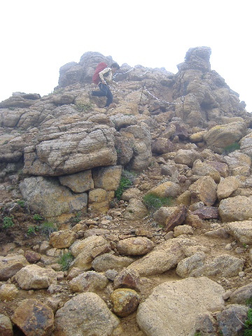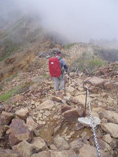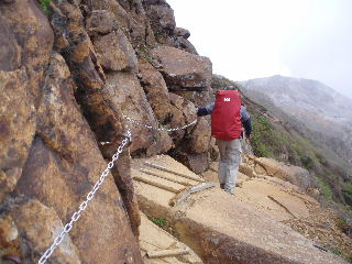 | ここからが大変!鎖場なのに団体さんと次々すれ違いが続きました。 | |