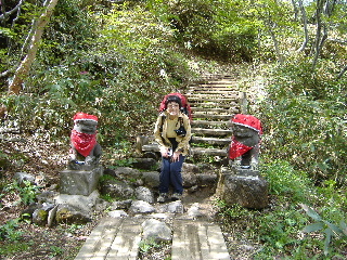 なるほど、亀さんが通せんぼしているようです、 ねぇ、カメちゃん、もといトシちゃん! トシちゃんは私に「通れる?」と言いたげ! この後初めて若い二人組みとすれ違いました。 |