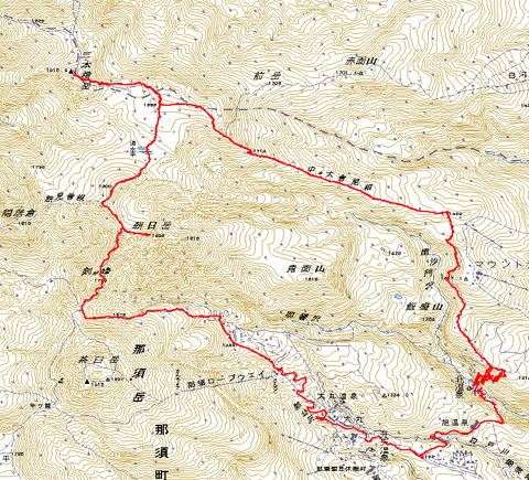 | 那須:三本槍岳〜朝日岳 (さんぼんやりだけ1917m〜あさひだけ1896mクリック地図 ) |